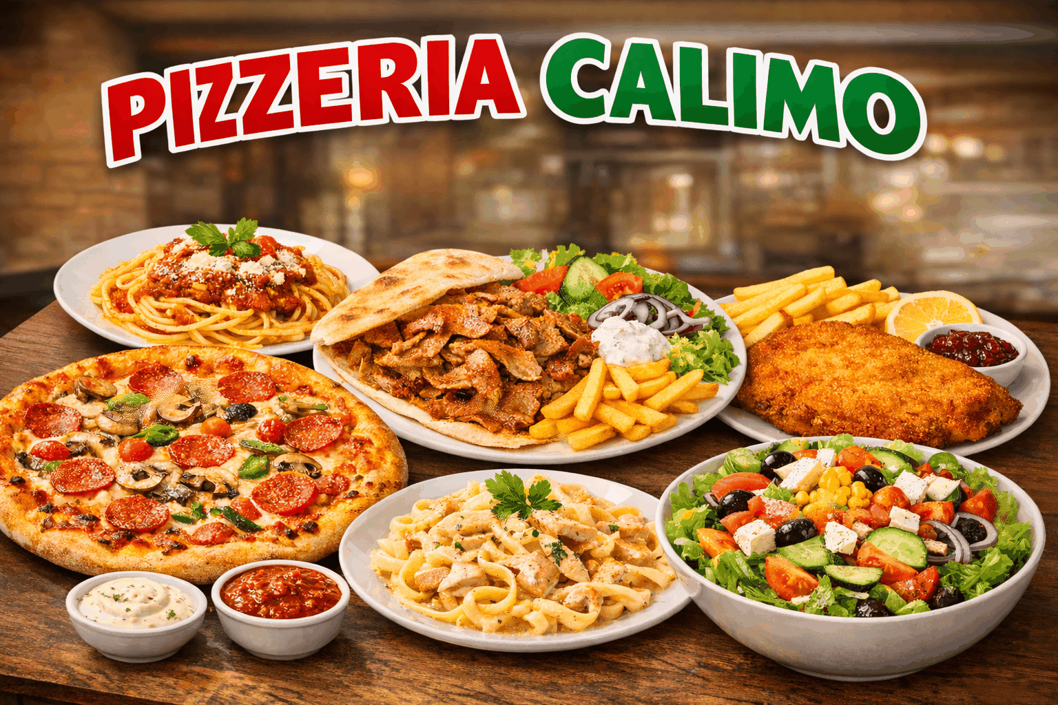 Hinterschinken, Salami, Bacon, Mais Scampi, Paprika, BBQ-Sauce Hähnchenbrust, BBQ-Sauce, Zwiebeln , Mais Hackfleisch, Zwiebeln, Peperoncino, Mais Hähnchenbrust, Broccoli, Mais Gouda-Käse, Weichkäse, Mozzarella, Gorgonzola Salami, Champignons, Hinterschinken